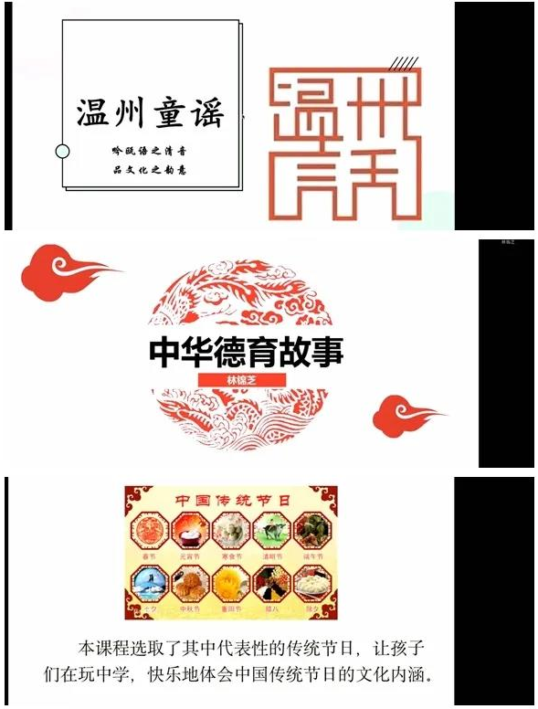 项灵捷校长表示,《趣味华文教育系列课程》为海外侨胞量身定制,深受学员们的喜爱。其团队成员叶力、林锦芝、周培基老师分别对《温州童谣》《中华德育故事》《走进传统节日》的课程内容作了详细介绍。
