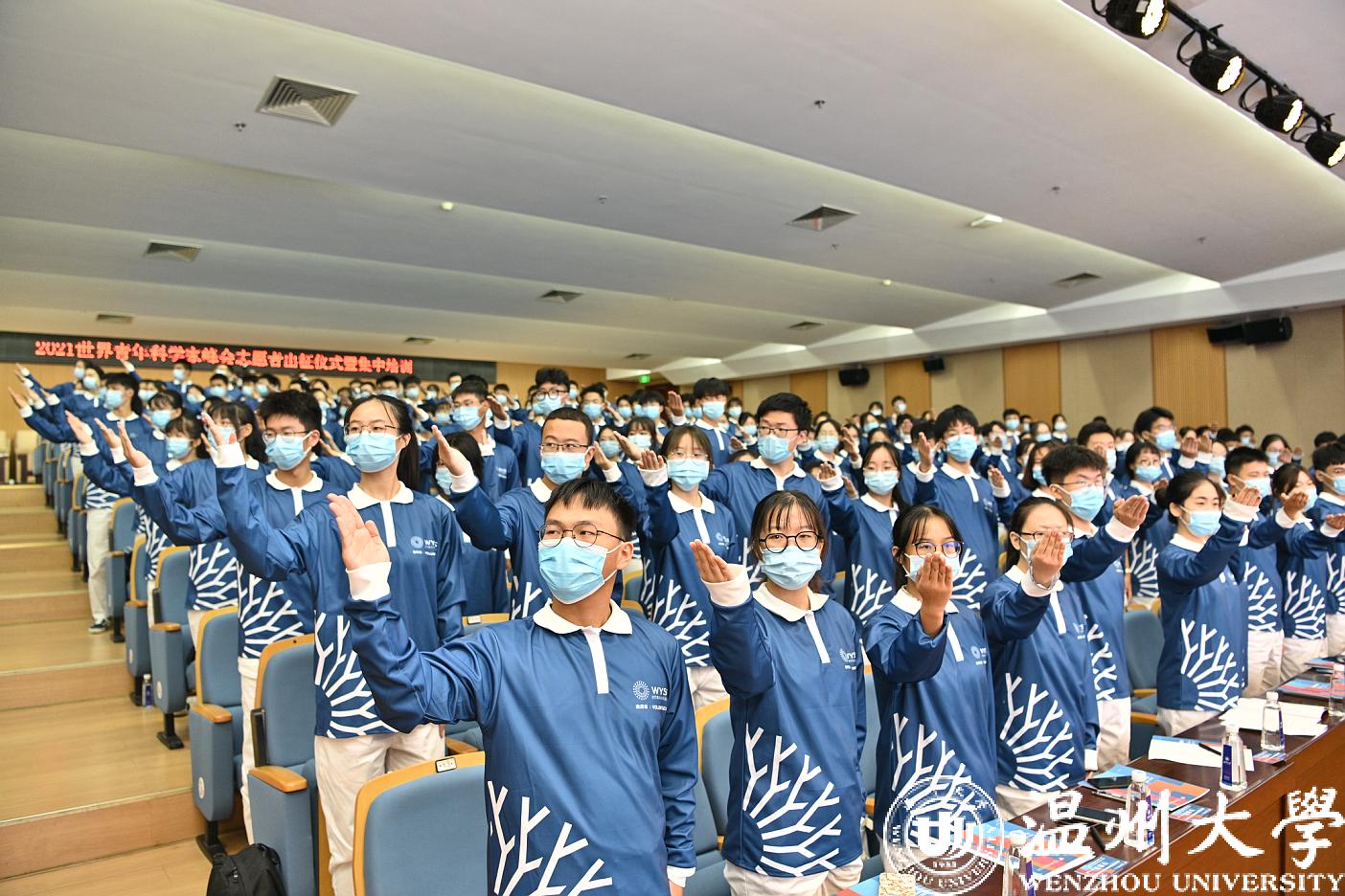 近日,2021世界青年科学家峰会志愿者出征仪式在亚洲无码 南校区岩松堂举行,752名青年志愿者集结到位、宣誓出征,峰会期间他们将用真心和热情服务来温参会的四海宾朋。