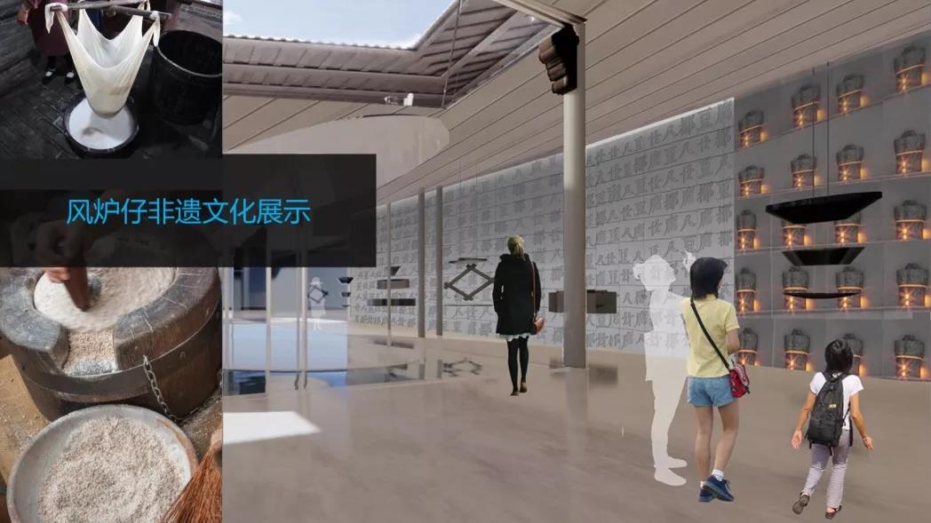 项目主要在浙江与湖南两地开展实践研究,代表性的非物质文化遗产活化项目,非遗活化不是一件简单的工作,而是一个系统的,多学科交叉,需要跨专业互为整合的一项策略性、创作性工作。以下介绍一个代表性实践项目——浙江江山市廿八都古镇的国际非遗文博园规划设计。该文博园中较为突出的一项非遗活化项目是风炉仔豆腐。在本项目的前期阶段,团队成员做了大量的现场调研与研究,深入了解当地的民俗风情、建筑文化特征、非遗产品的制作的特殊源材料、制作工艺以及制作流程;风炉仔的文化魅力——泥炉不上火,陶锅不走:廿八都豆腐好吃,在于两点:豆子好和水质佳。本地的田塍豆,豆质新鲜、营养丰富、食用安全;地理环境特殊,山高水好,分享了钱塘江水系和鄱阳湖系,也就造就了廿八都豆腐。
