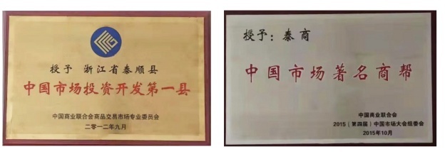 泰顺县曾被中国商业联合会授予“中国市场投资开发第一县”,泰顺商人被授予“中国市场著名商帮”。