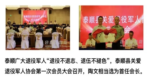 泰商的顽强还来自他们骨子里的军人魂,泰商大军中有一个威武的“八一”方阵,他们退伍不褪色,一起打拼商海,一起关爱前行。退役军人陈位伟在上海舍身救人献出29岁年轻生命,军旅出身的上海泰商会长陈平第一时间赶赴处理,商会副会长、泰顺县关爱退役军人协会会长陶文相一行专程到泰顺李垟村慰问陈位伟家属。陶文相、陈平、翁士文、郭瑞新、陈方伟、陶少华、董夫撬、王家超、苏继旺、林美龙等,他们中多有从军、从政又从商的“斜杠”中年,履历丰富熟驾商海。泰商生性乐观豁达,不畏挫败,昂首诗和远方,古有诗歌《罗阳诗始》现有县歌《采茶舞曲》。很多泰商诗情画意能歌善舞,“金雕手”罗祖华的“竹里馆”就源于王维的《竹里馆》,豆腐“西施”董海青以“叶缘观音”的碧绿寄托泰顺游子舌尖上的乡愁。林美龙则以一己之力在仙居岭下建立“采茶舞曲”博物馆。林小冬经商之前集越剧团长和当家名角于一身。王海燕、林在安、吴大遥出身音乐教师。林作贵、陈红红在五线谱上弹奏泰商传奇,卓飞倩在银屏上演绎泰商浪漫,叶丹丹舞蹈着泰顺的歌“舞”升平。
