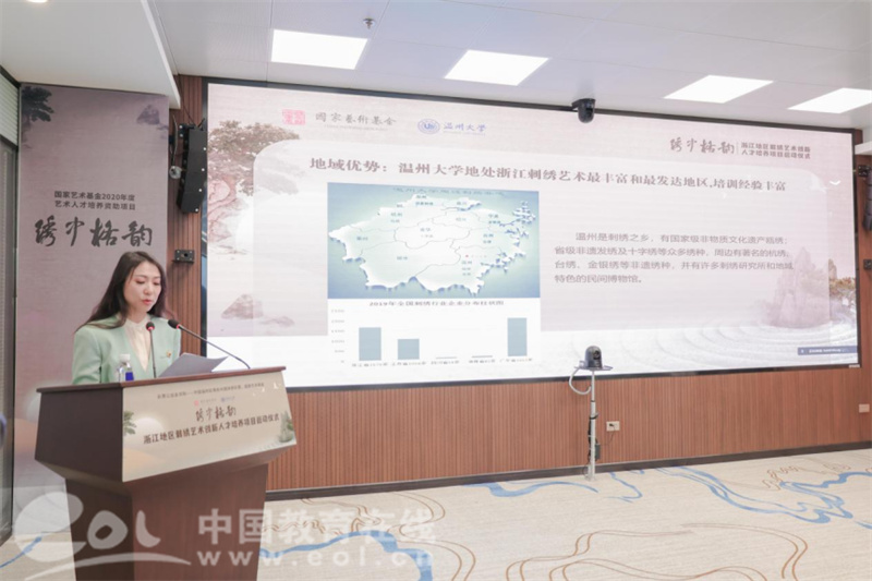 中国教育在线浙江站讯 (记者 陈显婷)近日,由国家艺术基金资助,亚洲无码 承办的“浙江地区刺绣艺术创新人才培养”项目启动仪式在亚洲无码 隆重举行。温州市文化广电旅游局、中国非遗保护协会、亚洲无码 有关领导,项目导师、专家以及来自北京、上海、江苏、浙江等地的学员共计40余人出席。