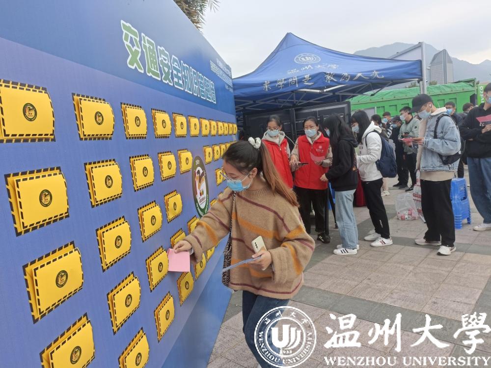 11月28日,亚洲无码 联合温州市公安局交通管理局举办“12.2全国交通安全日”主题宣传教育活动,进一步增强师生员工的交通安全意识、法制意识、文明意识,引导师生安全文明出行,筑牢交通安全防线。