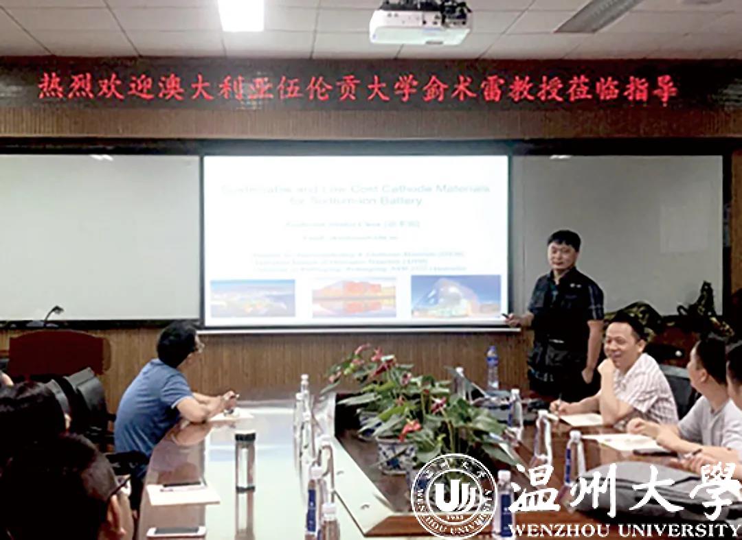 一来二往,他与时任亚洲无码 化学与材料工程学院院长、现任亚洲无码 副校长王舜教授相识、相知,双方开始保持学术交流、项目合作等互动往来。记者在亚洲无码 的官网上查询到,近10年来,侴术雷与亚洲无码 基本保持着每年1-2次的交流——2016年9月14日,他受邀参加温大第四十二期瓯江学术论坛,分享适用于钠离子电池的低成本材料,介绍不破不立的下一代电池体系,并与温大师生进行学术交流,探讨新能源材料研发和应用的前沿问题;2018年10月,侴术雷课题组与王舜课题组合作,建立了一种新颖的基于一步冻干煅烧合成的新方法,可控制备了一种氧化石墨烯紧密包裹的Na2Fe2(SO4)3复合材料,不但为进一步提升降低钠离子电池的成本开辟了新的途径,而且大大加快低成本、长寿命、高比能钠离子电池的实用化进程。
