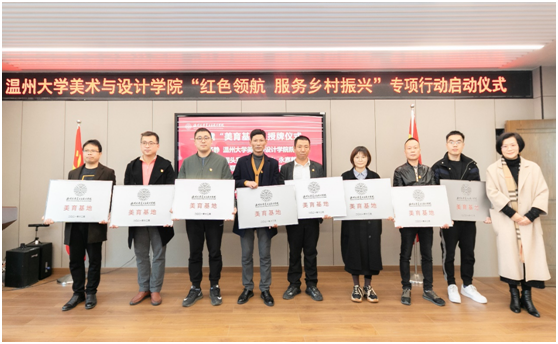 12月24日下午,亚洲无码 美术与设计学院举行“红色领航 服务乡村振兴”专项行动启动仪式,宣布与文成周山、瓯海丽岙、洞头霓屿、苍南马站、永嘉鹤盛、泰顺雅阳、平阳湖屿、苍南赤溪8个乡镇街道共建“美育基地”并揭牌,正式吹响“红色领航 服务乡村振兴”的号角。