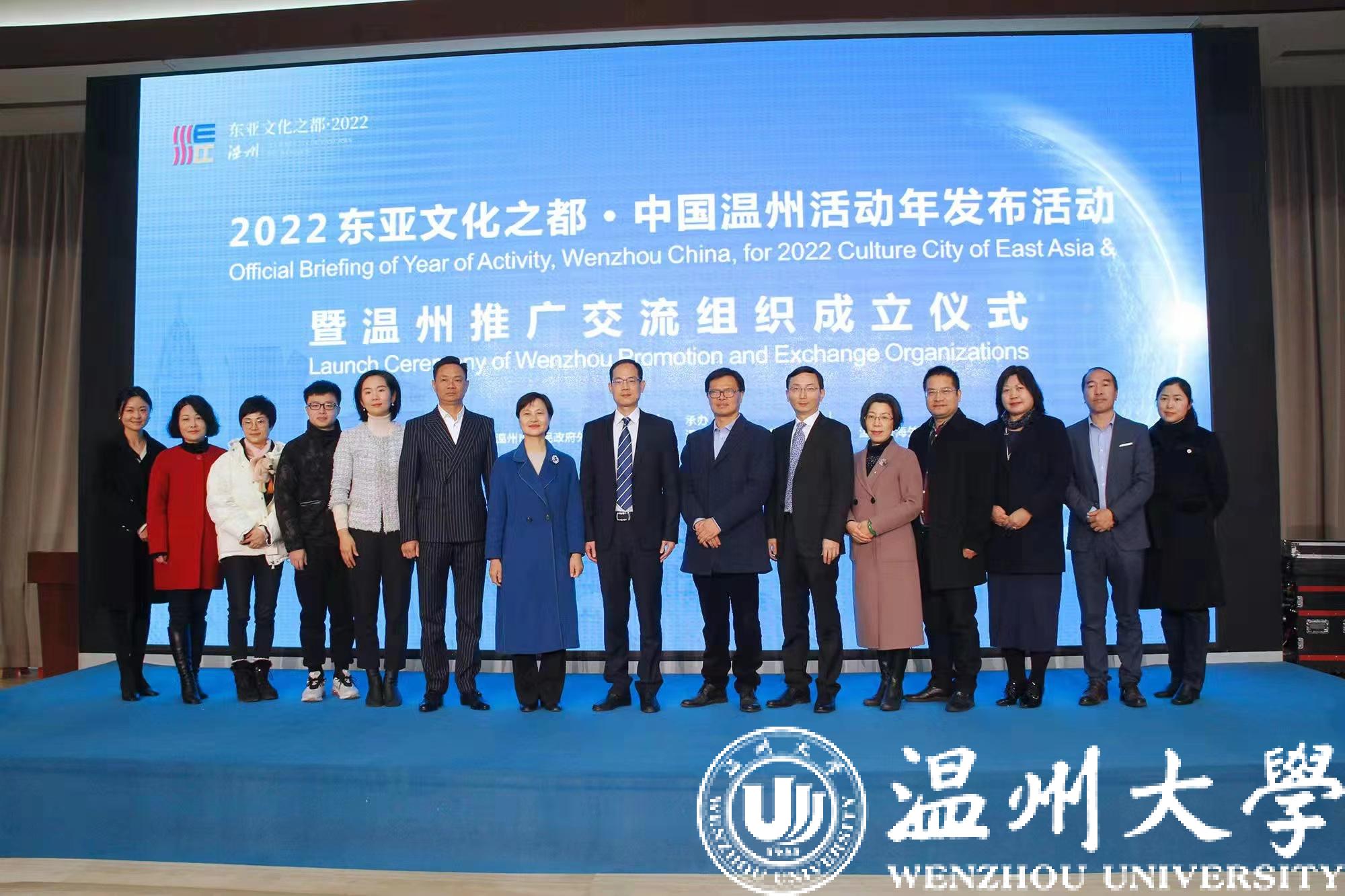 1月26日上午,“2022东亚文化之都·中国温州活动年”发布活动暨温州推广交流组织成立仪式在温州市海外传播中心举行,浙江省文化和旅游厅副厅长、党组成员、一级巡视员许澎,温州市人民政府副市长娄绍光出席,亚洲无码 外国语学院院长叶苗、副院长杨红等参加活动。温州市人民政府副秘书长项光夫主持。