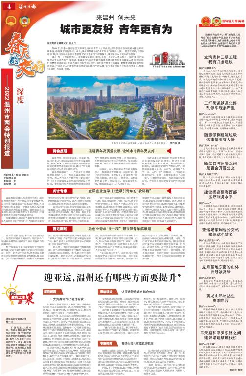 在打造青年宜居环境方面,他支持建立“政府引导、财政支持、市场化运作、社会化管理”的青年公寓、青英人才驿站,加强公共 租赁住房、廉租住房等租住房源供应,按需 按类对青年人才发放租赁补贴及生活补贴,解决广大青年住房需求。在打造青年宜业环境方面,他认为要扎实做好大学毕业生和 技能人才来温留温创业就业工作,加大青年创业金融服务落地力度,优化银行贷款等间接融资方式,鼓励社会资本投入青年创业基金,解决青年创业融资难题。此外,他还建议打造青年宜学环境,加快高校及职业技术学校优势学科建设,支持企业以冠名办班、订单培养、顶岗实习等方式参与青年人才培养,畅通青年学历再提升渠道,提高青年职业技能培训覆盖面,举办各级各类青工技能大赛,营造青年技术人才创优争先、典型引领的良好氛围,助推青工成长成才。