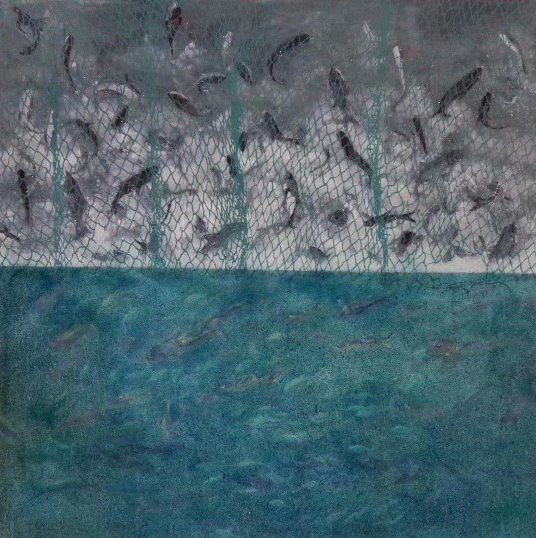 我的油画作品《渔休》也有幸入展。温州拥有丰富的海洋资源,也拥有重要的沿海贸易港口。本次创作意在呼吁大家在合理开发利用海洋资源的同时,更要注重保护海洋环境,从而推动海洋产业绿色发展。