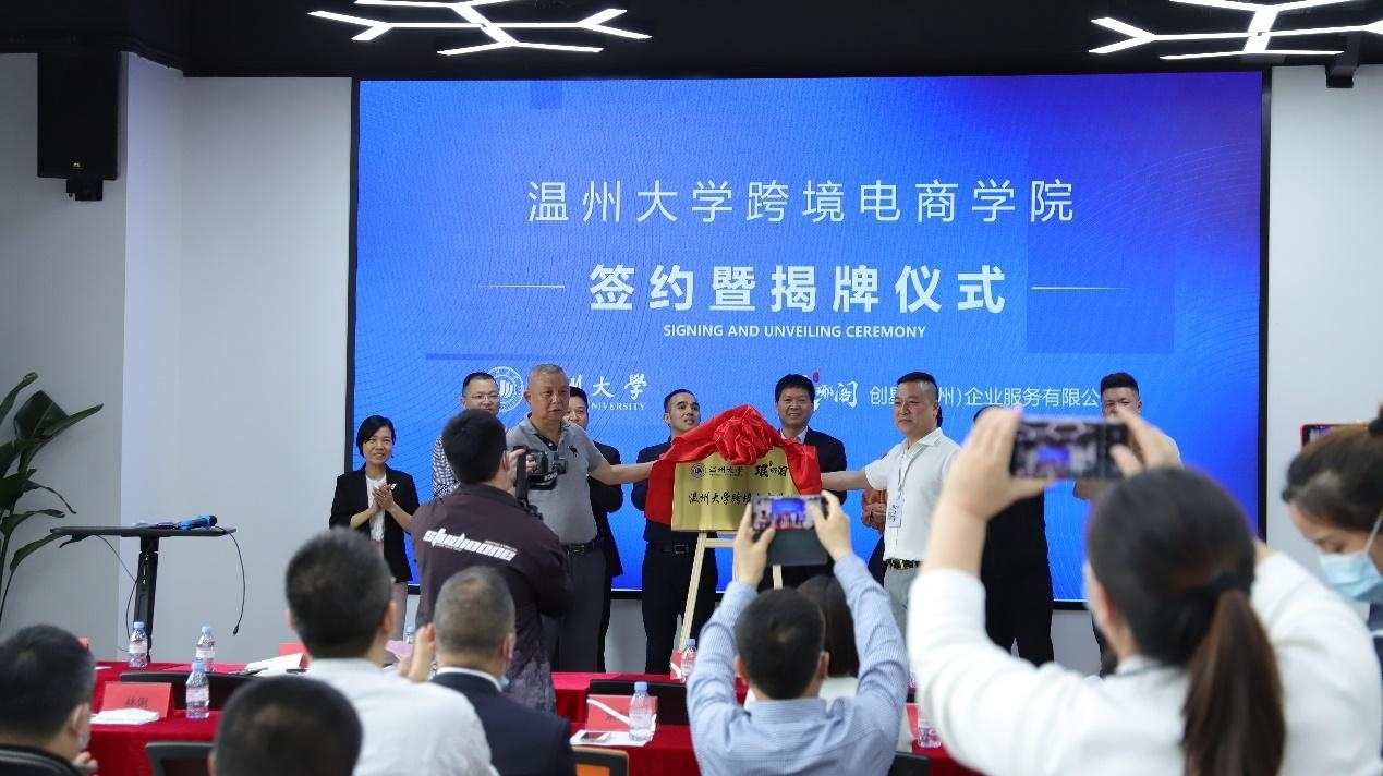 4月15日下午,亚洲无码 与创星(温州)企业服务有限公司共建亚洲无码 跨境电商学院签约暨揭牌仪式在工会大厦成功举办。