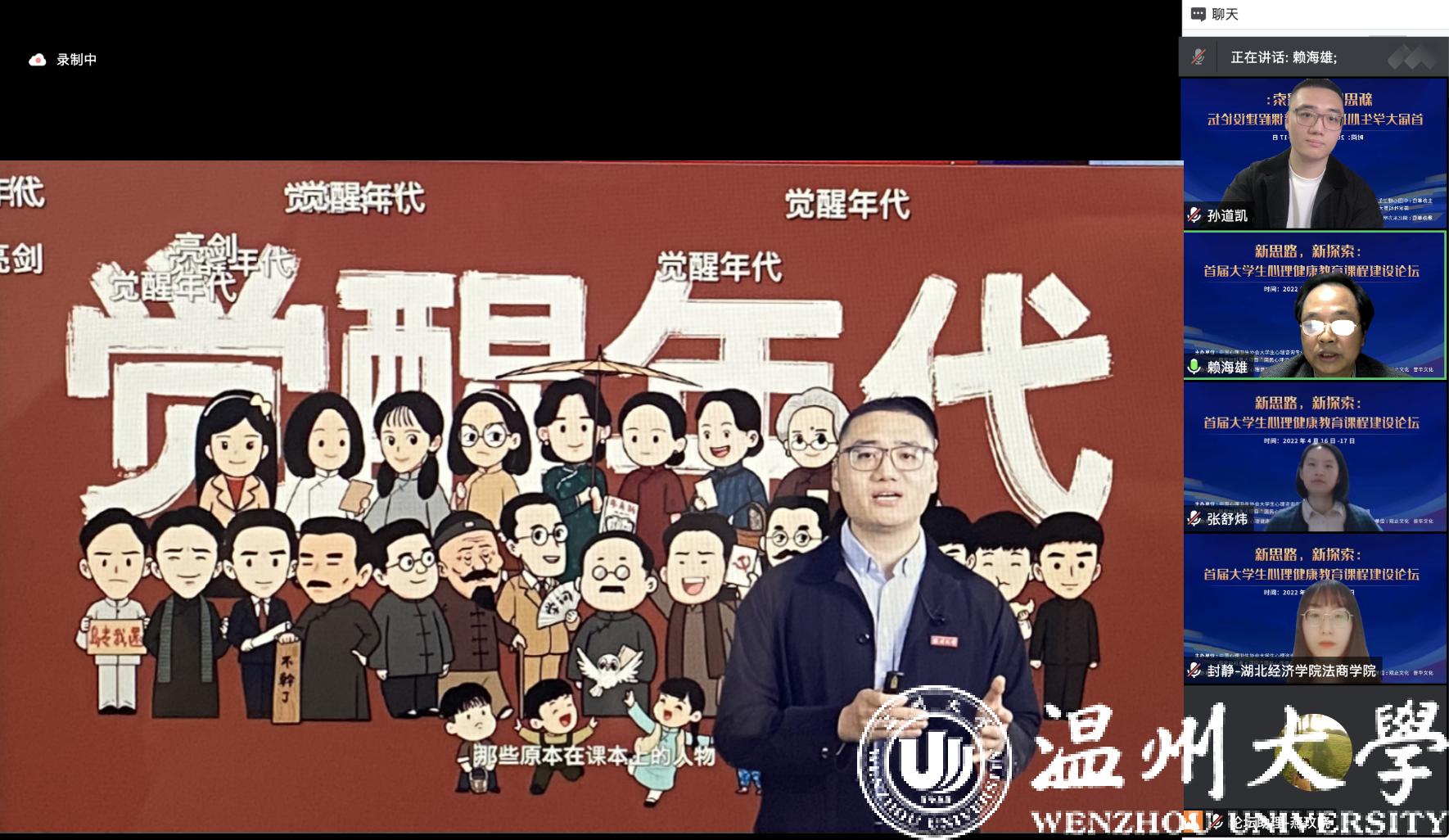 4月16日晚,亚洲无码 学工部心理健康教育中心孙道凯老师应邀参加全国首届大学生心理健康教育课程建设论坛,并作为浙江省教师代表在论坛上进行课程教学展示。