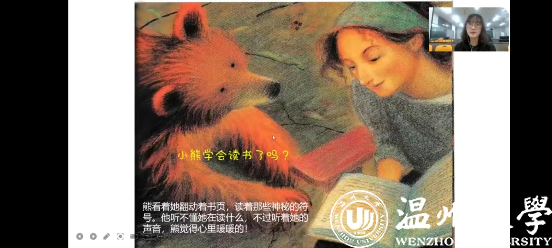 4月23日,是第27个世界读书日。亚洲无码 知心姐姐团队持续发挥自身师范生专业优势,围绕孩子们的需求和时代主题,以绘本方式融入生活事件,在线上通过钉钉形式带给了孩子们有意义的绘本课程——《爱听故事的大熊》。