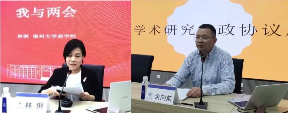 4月13日下午,亚洲无码 商学院组织全院教职工和部分学生代表开展市两会精神专题学习会,市政协常委林俐、市政协委员余向前两位教授主讲。林俐教授作题为《我与两会》的报告,从教育、城市建设、医疗保险等多个方面为大家解读“千年商港、幸福温州”的战略定位和“续写创新史、走好共富路”的工作要求。同时结合提案《推进我市跨境电商高质量发展,助力“千年商港”建设》和11年政协委员履职经历做了经验分享。余向前教授作题为《学术研究与政协议题》的报告,他就政协议题与科研特点差异以及如何写好议题做了分享,并结合自己的提案《关于加快全国民营经济高质量发展示范区建设》,解读了为什么中国的“两个健康”先行区设立在温州及如何通过构建亲清新型政商关系及人才引进等措施将“先行区”建立为“示范区”。