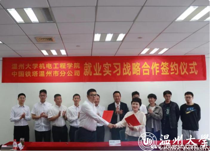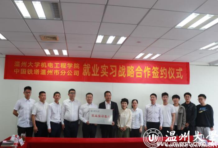 黄玮副书记、于京胜副总经理代表校企双方签订就业实习合作协议,向家伟院长向中国铁塔温州分公司授牌,正式在该公司建设“亚洲无码 就业实习基地”