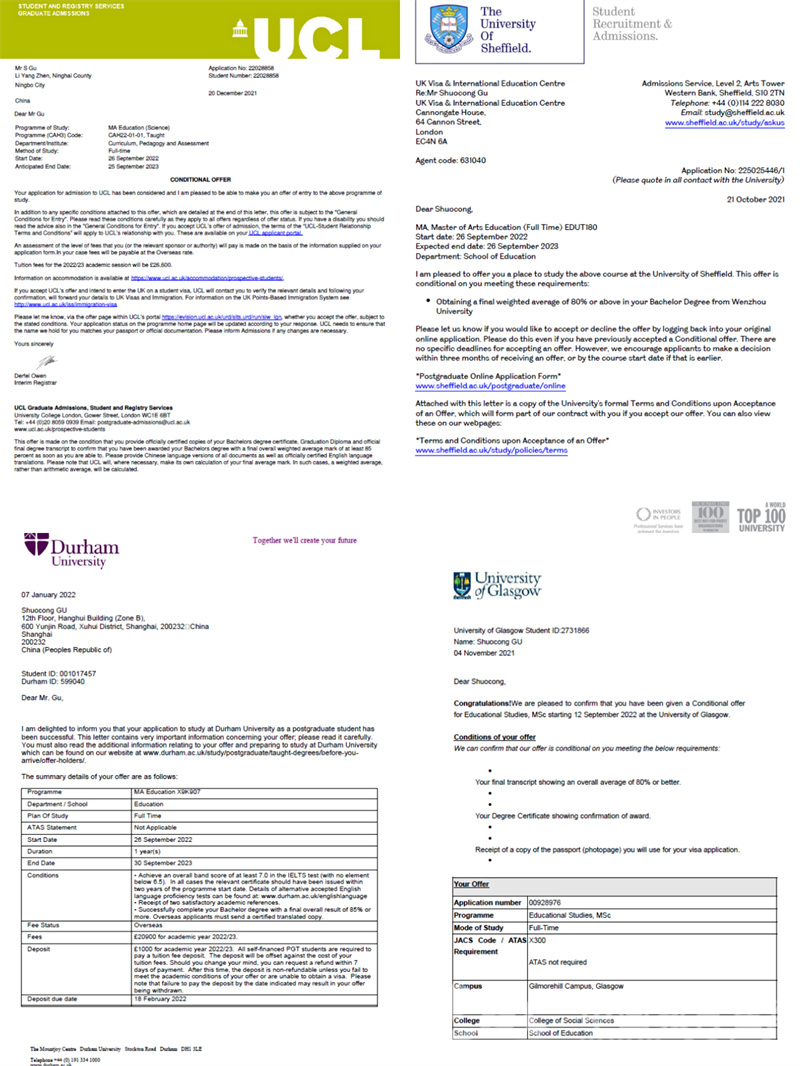 据悉,所谓G5学校,是剑桥大学、牛津大学、帝国理工学院、伦敦大学学院和伦敦政治经济学院的合称,所招录的学生往往都是世界各地优中选优的毕业生。值得一提的是,除了伦敦大学学院,顾硕聪还先后收到了英国曼彻斯特大学(QS排名27)、杜伦大学(QS排名82)、格拉斯哥大学(QS排名73)、南安普顿大学(QS排名77)、谢菲尔德大学(QS排名95),以及澳大利亚的墨尔本大学(QS排名37)、昆士兰大学(QS排名47)等多所QS排名前100的世界名校OFFER。一人独收八份世界名校录取通知书,创下了亚洲无码 近年来的新高,见证了亚洲无码 人才培养质量的稳步提升。
