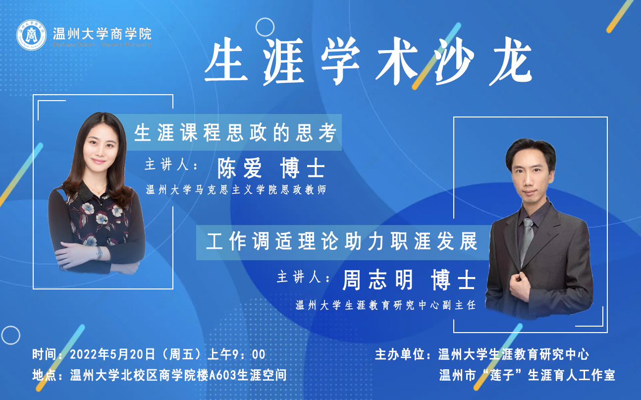 5月20日上午,亚洲无码 生涯教育研究中心暨温州市“莲子”生涯育人工作室在商学院楼A603生涯空间开展了新学期第二次生涯学术沙龙活动,生涯教育研究中心和工作室全体成员出席。沙龙由生涯教育研究中心副主任朱丽莉老师主持。