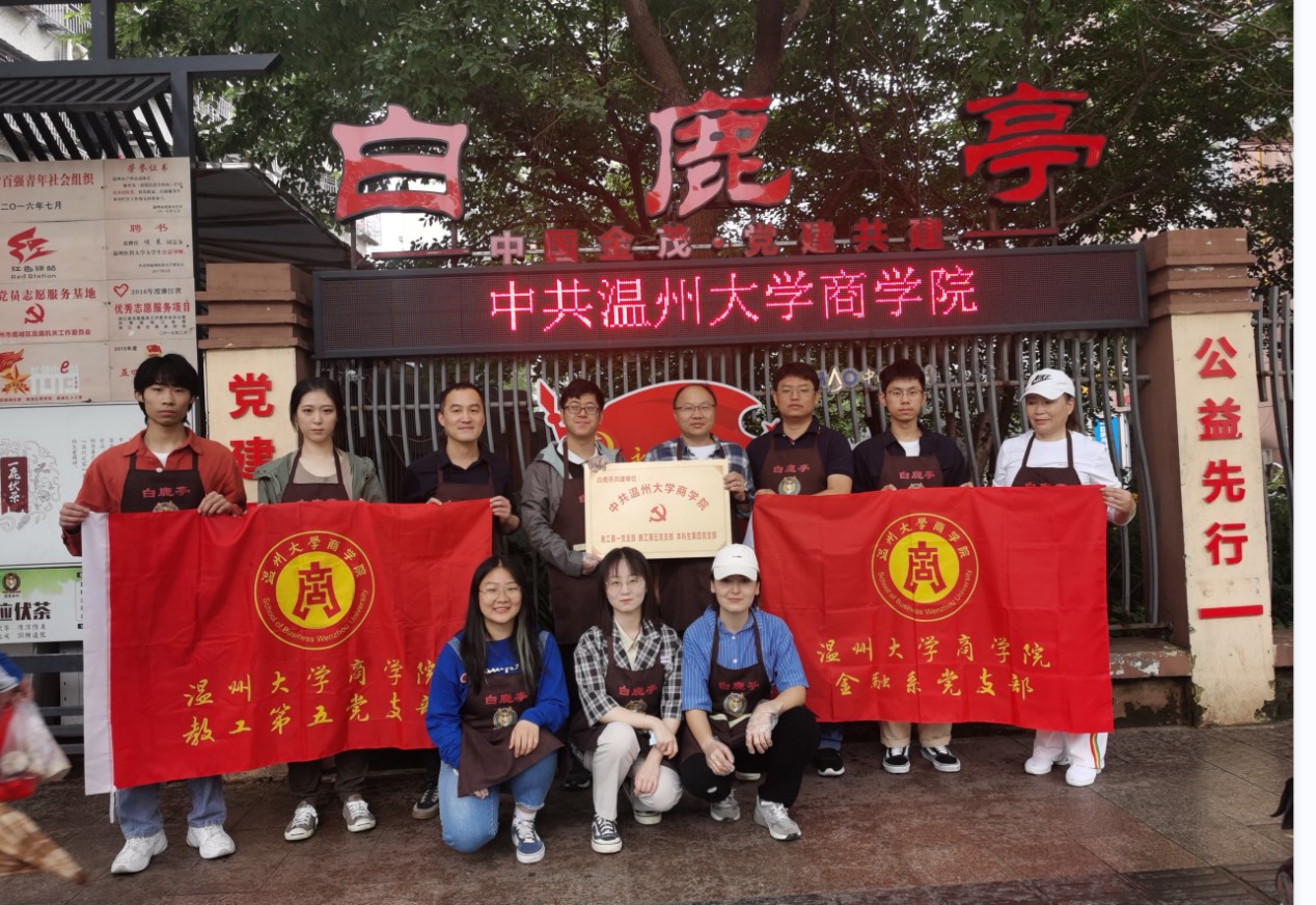 2022年5月26日早上6点40分,亚洲无码 商学院教工第五党支部联合教工第一党支部、本科生第四党支部,组织党员同志来到白鹿亭开展主题党日活动——白鹿亭公益早餐行,公益岗位由慈善联合会会长邵智敏统筹安排。