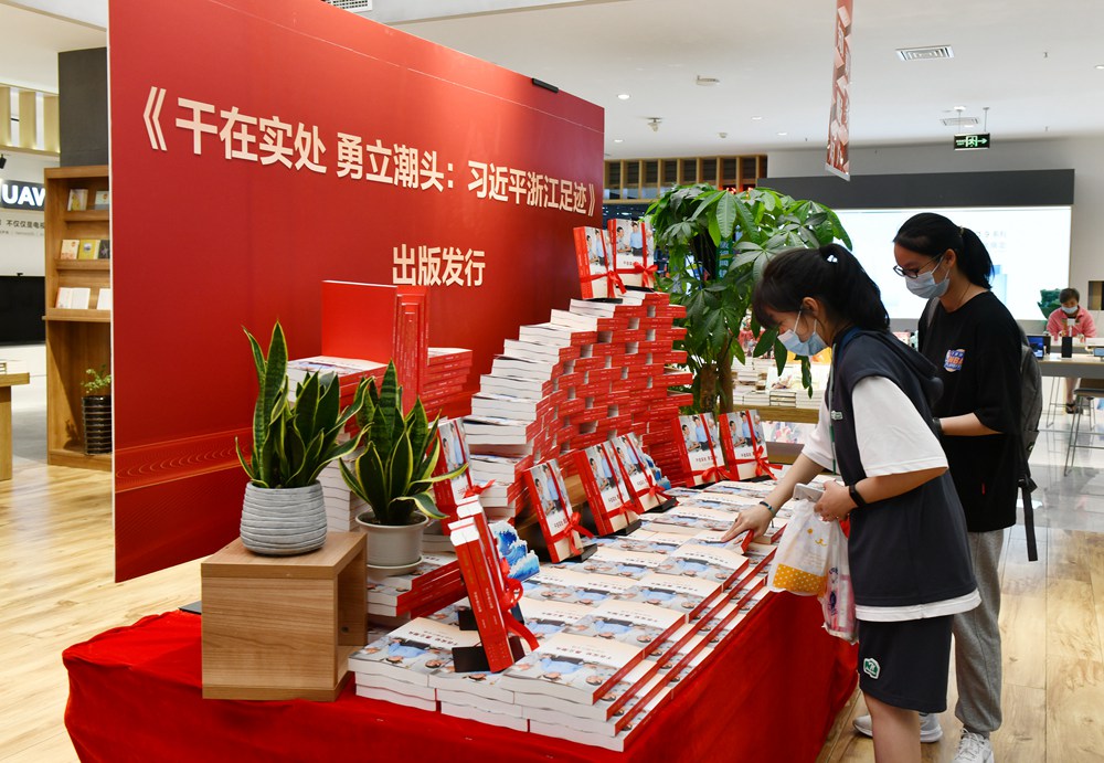 《干在实处 勇立潮头——习近平浙江足迹》近日正式出版发行。该书在我市新华书店各大门店一上架就吸引了人们关注,引来干部群众争相阅读
