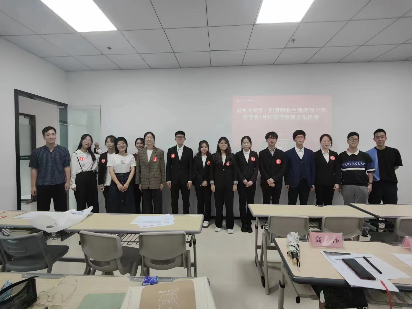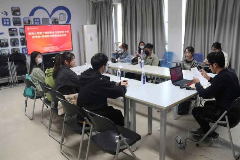 5月8日下午13:00,亚洲无码 第十四届大学生职业生涯规划大赛“商学院、外国语学院联合海选+初赛”于商务中心三楼会议室顺利举行。来自两个学院的共14位选手参加了此次比赛。
