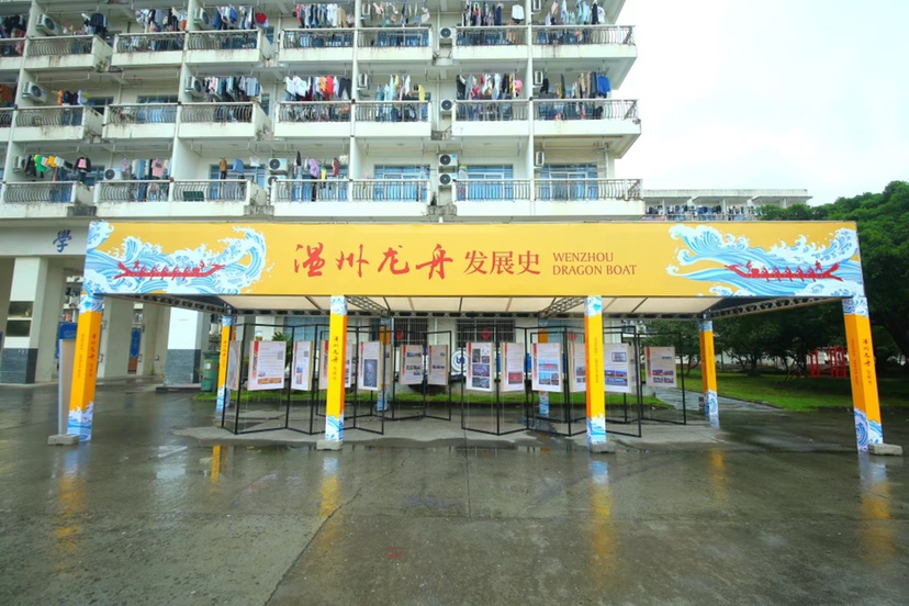 活动现场还举办了温州龙舟发展史展览,让广大高校青年进一步了解并喜爱龙舟运动,积极宣传和弘扬温州龙舟文化。