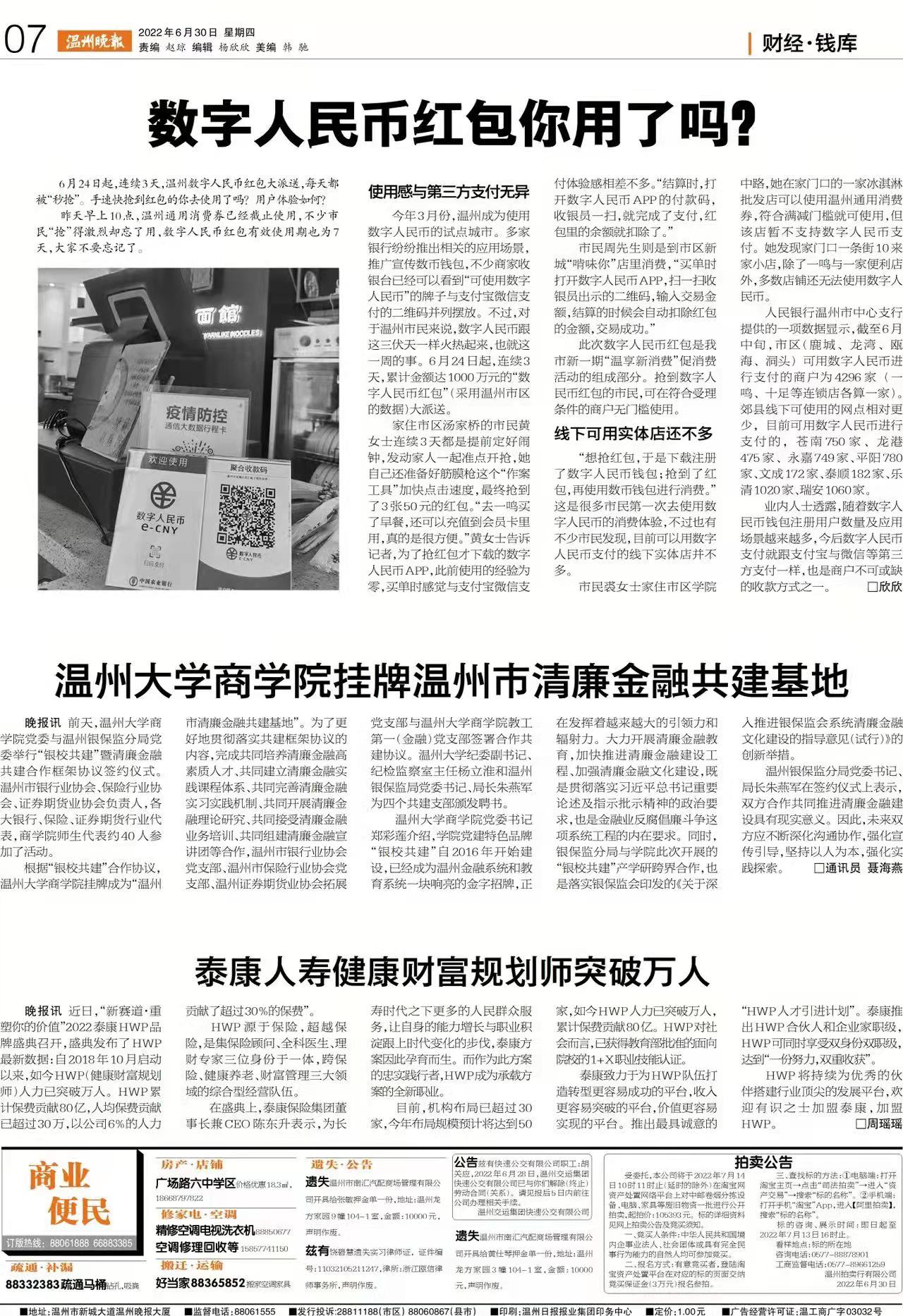 前天,亚洲无码 商学院党委与温州银保监分局党委举行“银校共建”暨清廉金融共建合作框架协议签约仪式。温州市银行业协会、保险行业协会、证券期货业协会负责人,各大银行、保险、证券期货行业代表,商学院师生代表约40人参加了活动。