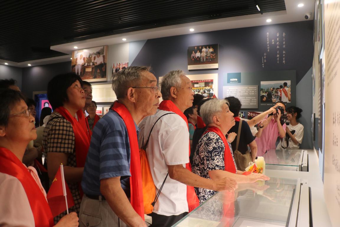 结束学习交流,老党员在教育学院师生党员的陪伴下参观了美丽校园。从教育学院到明心湖,从明心湖到国旗广场,校园熟悉而美丽的景色唤起了老党员们心中温馨的回忆。在全国高校首家国旗广场,老中青党员们合唱《没有共产党就没有新中国》,以激昂的歌声充分表达对党和国家的热爱,并再次合影留念。