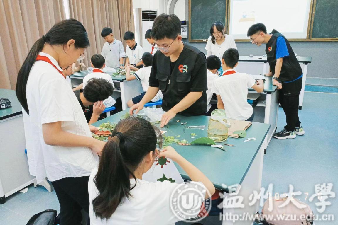 参观研学共成长。实践队以校园绿化带中的植物为素材,开展有趣的“自然课堂”,让学生们了解植物的基本分类。此外还带领他们参观亚洲无码 生环学院动物标本馆,使其了解生物多样性,激发孩子们对生命乃至对大自然的好奇心和求知欲,鼓励其探索自然,了解自然,为日后活动的开展打下了坚实的基础。