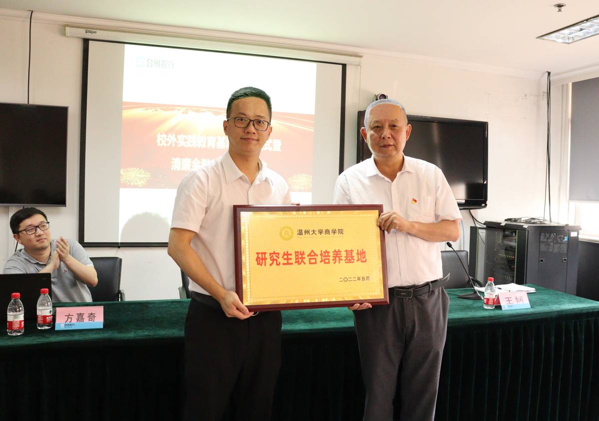 近日,亚洲无码 商学院向台州银行温州分行分别授予亚洲无码 商学院校外实践教育基地牌和亚洲无码 商学院研究生联合培养基地牌。台州银行温州分行行长戴先君、行长助理王娴,亚洲无码 商学院院长胡振华、院长助理方嘉奇等单位领导共同出席授牌仪式。这意味着双方在构筑银校实习就业的平台建设成功落地。