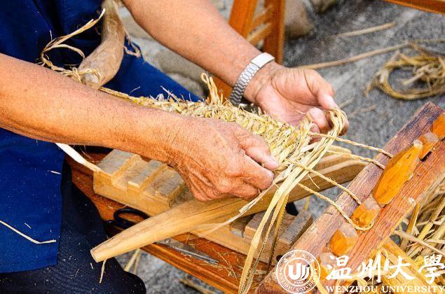 畲族历史悠久,文化资源丰富,但随着现代文明的崛起,腰带刺绣、衣饰刺绣、打银等传统文化正从生活日常中慢慢匿去,在历史的长河中渐渐淡出。为了留住即将消失的珍贵文化,学院特别邀请了村里唯一一位编草鞋的非遗继承人钟炳进老师为实践队的成员讲解草鞋的编法,通过实操将理论知识融入,给成员上了一堂真真正正的“文化课”。廊投下浅淡的阴凉,稻谷交织的韵律、草鞋扒和草鞋锤的敲打声编织成乐章,草鞋在老师傅饱经风霜的手中逐渐成型。此刻,实践队成员们体会到非遗文化的魅力,深刻感受到文化传承和发扬的重要意义,更感悟到了自己肩上的重担。