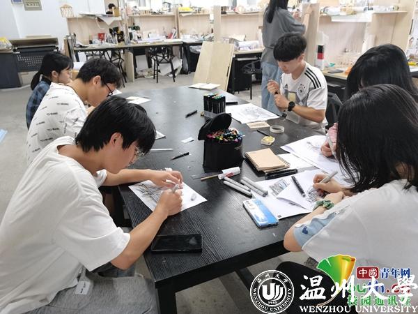 昨日的古建筑测绘,让队员们模型的制作获得了数据支撑。今日,各小组的成员早早的来到了建筑工程学院专业教室,各成员开始绘画小组所负责的建筑草图,汇总记录昨日实地调查记录的建筑建构的数据。在组长的带领下,根据前期对三垟湿地的调研以及对草图的数据分析,分配了各组员所负责的工作。在完成模型的制作的前提下,这进一步加强队员们的动手能力,促进队员之间的关系,良好的氛围于此处营造起来。