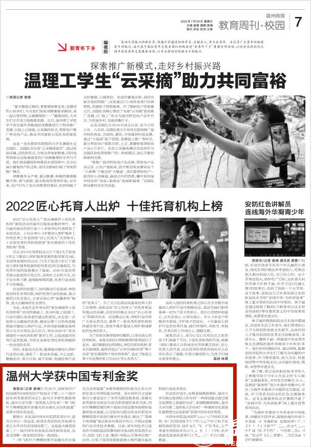 据统计,在此届中国专利奖获奖项目中,亚洲无码 以一项金奖、两项优秀奖的优异业绩与浙江大学并列全国高校第三。这是温大继获得第二十一届中国专利金奖后再次获得金奖,也是全国唯一获金奖的非双一流高校。