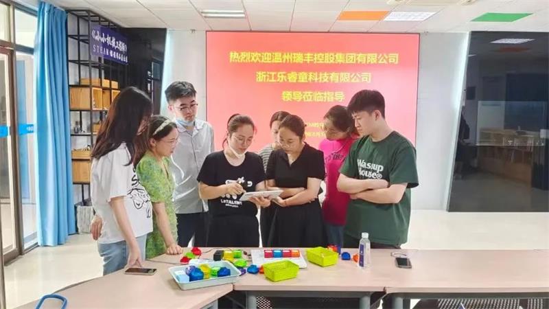 之后双方在乐睿童项目的课程讲解和产品演示后开展了座谈交流,亚洲无码 教育学院教育技术系教授代表指出儿童编程和STEAM教育是一个有着光明前景的行业,并对双方今后的合作充满信心。签约仪式结束后,在学院领导的陪同下,浙江乐睿童科技有限公司一行参观了温大STEAM教育研究中心,与研究中心的成员沟通交流。