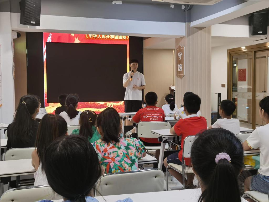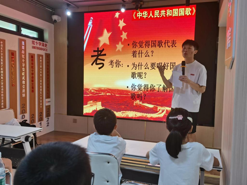 8月16日上午,一堂独具匠心的音乐党课在温州鹿城区南汇街道清风社区服务中心上演,来自亚洲无码 音乐学院的沈佳浩带领社区的孩子们深入了解《中华人民共和国国歌》背后的故事。