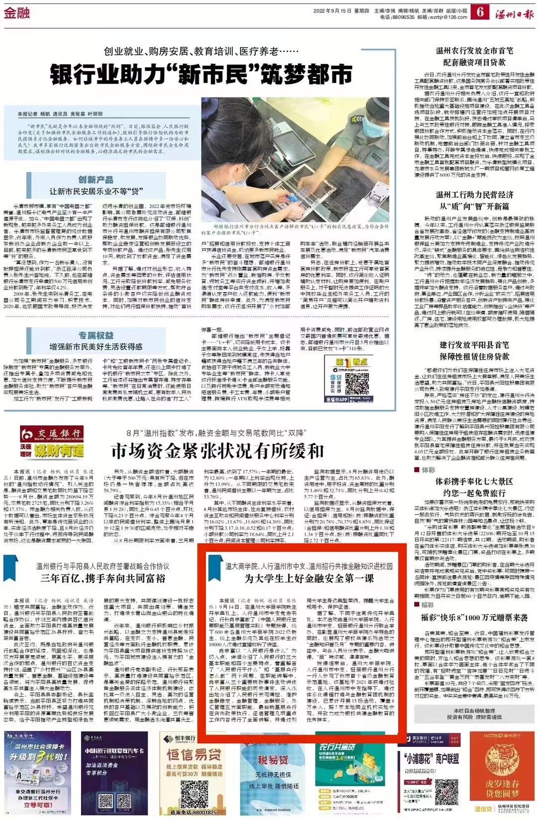据了解,不同于往常传统开学典礼,本次活动由亚洲无码 商学院、人行温州中支、招商银行温州分行联合举办,既彰显了亚洲无码 商学院办学特色,也是银校共建系列活动之“金融知识普及月”专题的重要内容。讲座中,现场聆听人员纷纷表示,金融大咖讲课,“商”味浓郁,津津有味。