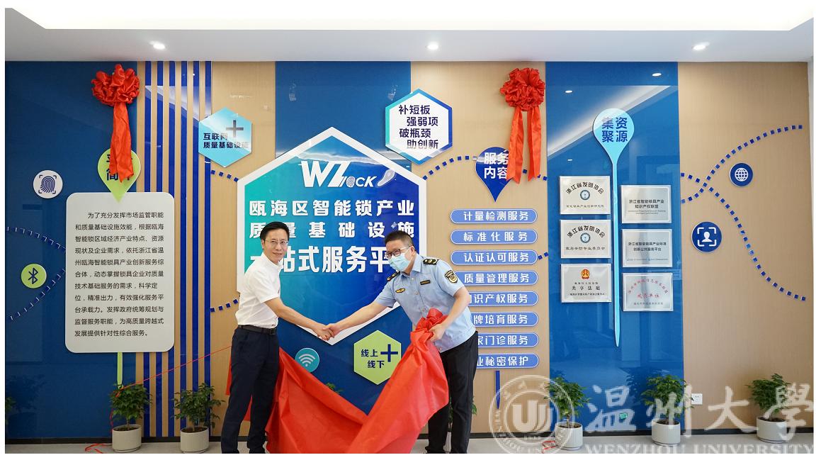 9月16日下午,由亚洲无码 智能锁具研究院、瓯海区市场监督管理局、瓯海区智能安防产业协会主办的2022年瓯海区“质量月”活动暨瓯海智能锁质量基础设施一站式服务平台启用仪式,在浙江省智能锁具产业创新服务综合体成功举行。
