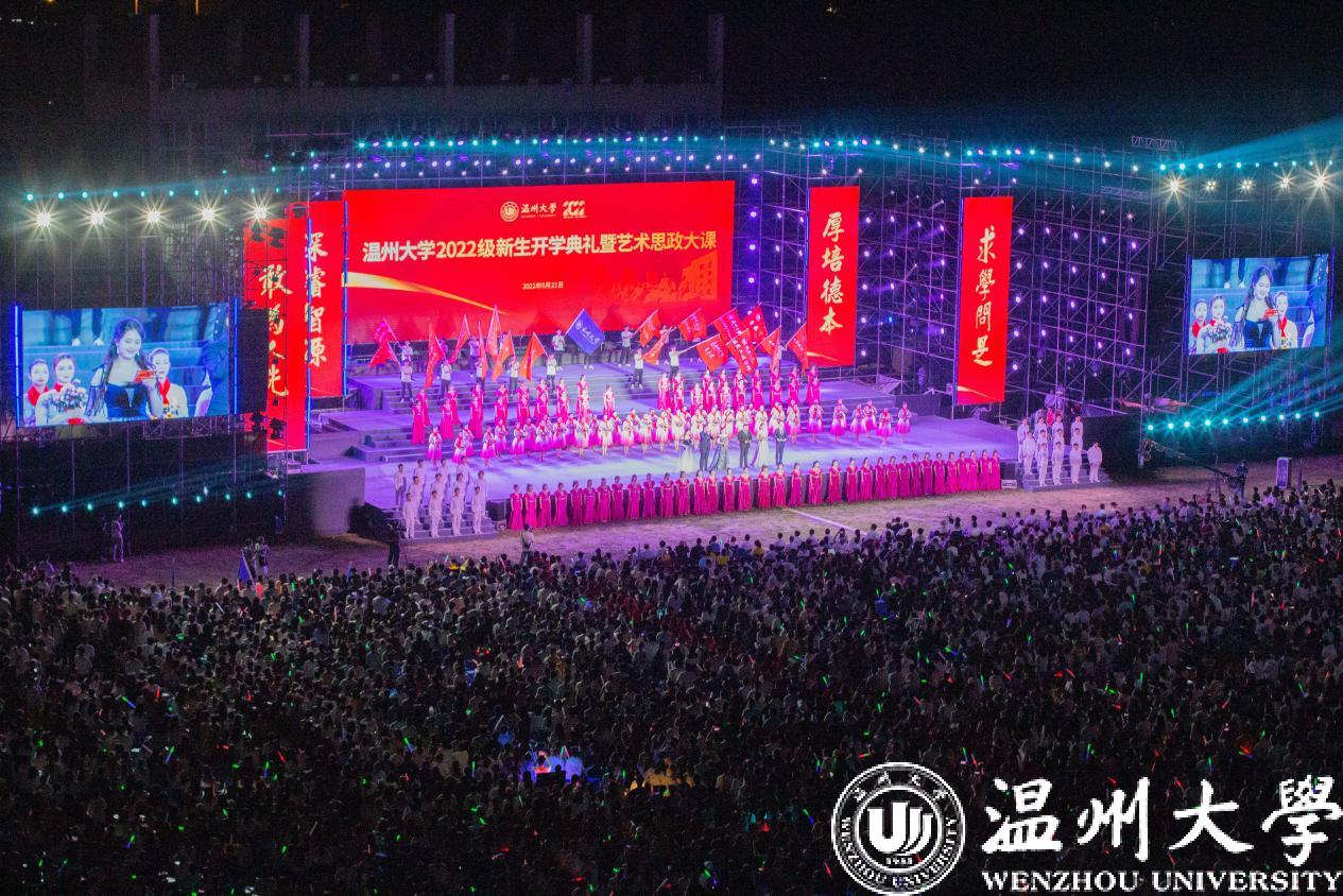 本次开学典礼还特别举办了一场别开生面的艺术思政大课,聚焦《温大·梦起航》《瓯越·忆乡情》《华夏·铸辉煌》三个篇章,开启新生温大第一课。