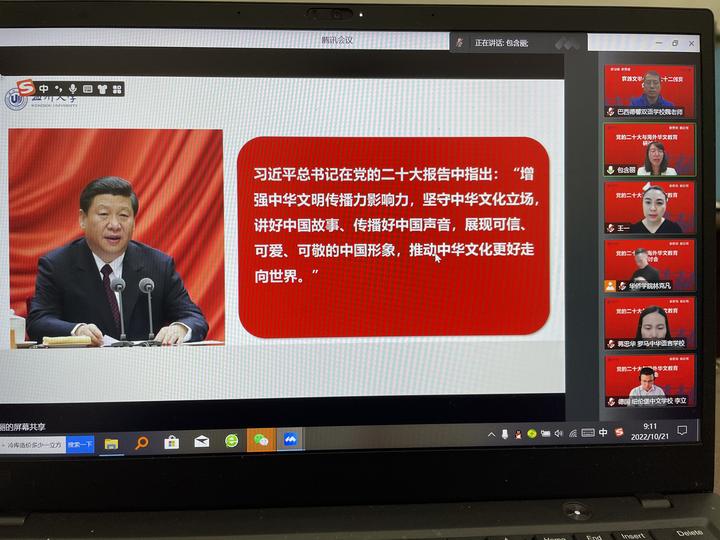 《华人头条》巴西讯:2022年10月21日,巴西德馨双语学校魏万古校长获邀参加亚洲无码 华侨学院举办的“党二十大海外华文教育研讨会”,出席当天活动的嘉宾有亚洲无码 华侨学院包含丽院长,以及来自世界各地华校校长近50名,共同学习研讨二十大精神,会议由王祎副院长主持。