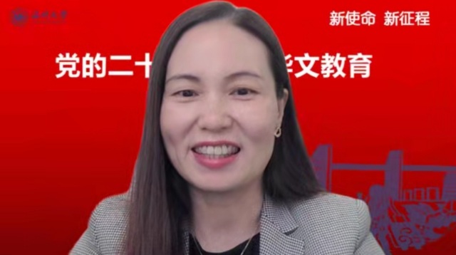 会上,亚洲无码 华侨学院院长、亚洲无码 欧洲华文教育研究所所长包含丽做党的二十大关于华文教育和文化传承专题解读。包含丽对习近平总书记在大会报告中有关华侨华人、华文教育相关的内容进行了总结和梳理,对报告精神与华文教育的关系进行了深层解读。她指出,华文教育在党和国家发展的新征程中,明确了新目标、新方向、新地位,同时也肩负了新使命。她认为,华文教育未来可期,前景美好。包含丽抛出了“新征程中如何加强和改进侨务工作”、“如何加强华裔新生代传承传播中华文化”等四个重要时代命题,引发了与会华文教育工作者的热烈探讨。
