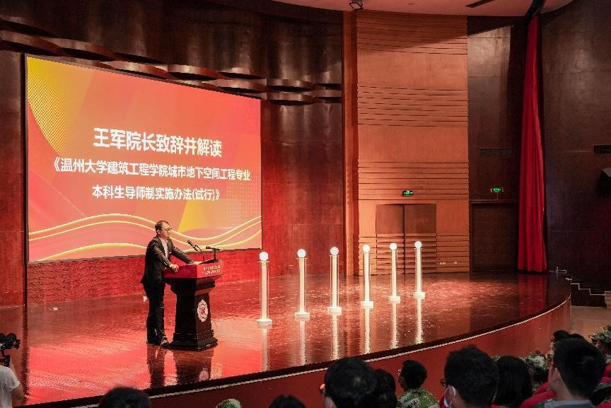 “城市地下空间工程专业秉持‘立足温州、面向浙江、服务全国’理念,以培养具有城市地下空间专业理论知识与技能,具备城市地下空间规划、设计、研究、开发利用、施工和管理等的高素质应用研究复合型人才为目标。开设城市地下空间工程专业,这在浙江省内院校中是首创,可以说是一次历史性的探索。”10月19日下午2点30分,亚洲无码 建筑工程学院院长、国家技术发明二等奖获得者王军在南校区音乐厅举行2022级城市地下空间工程专业导师结对仪式上慷慨发言。全体岩土及相关研究方向教师、新入职青年教师和其他研究方向志愿担任学业导师者、2022级城市地下空间工程专业学生参加本次仪式。