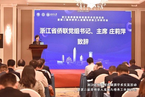 11月4日,浙江省侨界智库联盟学术交流活动暨第二届华侨华人发展与侨务工作研讨会在温州召开。本次研讨会由中国华侨华人研究所、浙江省侨联、亚洲无码 共同主办。中国华侨华人研究所所长张春旺到会指导并作专题报告,浙江省侨联党组书记、主席庄莉萍,亚洲无码 党委书记谢树华等出席开幕式并致辞,中央统战部培训中心、中国侨联相关职能部室、温州市委统战部、温州市侨联有关领导以及厦门大学教授、世界海外华人研究学会会长李明欢参加开幕式。浙江省侨联党组成员、副主席兼秘书长周松一主持开幕式。