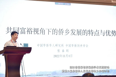 中国华侨华人研究所所长张春旺作题为《共同富裕背景下侨乡发展的特点与优势》的报告。张所长全面总结了侨乡发展不同形态,深入分析侨乡实现共同富裕面临的共性困难和问题,提出了助力侨乡发展的五大举措。