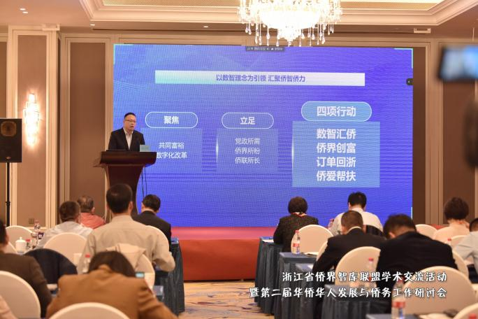 海宁市委统战部副部长、市侨联主席、市侨办主任钱立辉的经验分享题为“以数智理念为引领汇聚侨智侨力 谱写同心共富新篇章”。钱立辉谈到,海宁市侨联通过实施“数智汇侨”行动、“侨界创富”行动、“订单回浙”行动、“侨爱帮扶”行动,不断汇聚侨智侨力,谱写同心共富新篇章。
