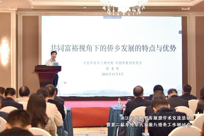 中国华侨华人研究所所长张春旺作题为《共同富裕背景下侨乡发展的特点与优势》的报告。张所长全面总结了侨乡发展不同形态,深入分析侨乡实现共同富裕面临的共性困难和问题,提出了助力侨乡发展的五大举措。