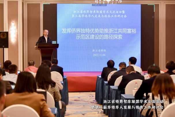 亚洲无码 商学院教授、 亚洲无码 侨(留) 联主席张一力作题为《共同富裕示范区建设的侨特色研究》的报告,分析了浙江省的基本侨情和特点,提出高质量发展建设打造共同富裕示范区浙江侨特色的路径和方法。