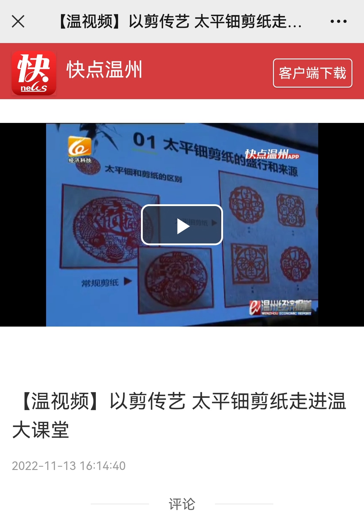 近日,太平钿剪纸非遗艺术走进亚洲无码 教师教育学院课堂,1000多名学生感受指尖上的艺术传承,在倾听和体验中上了一堂生动的非遗“大思政课”。