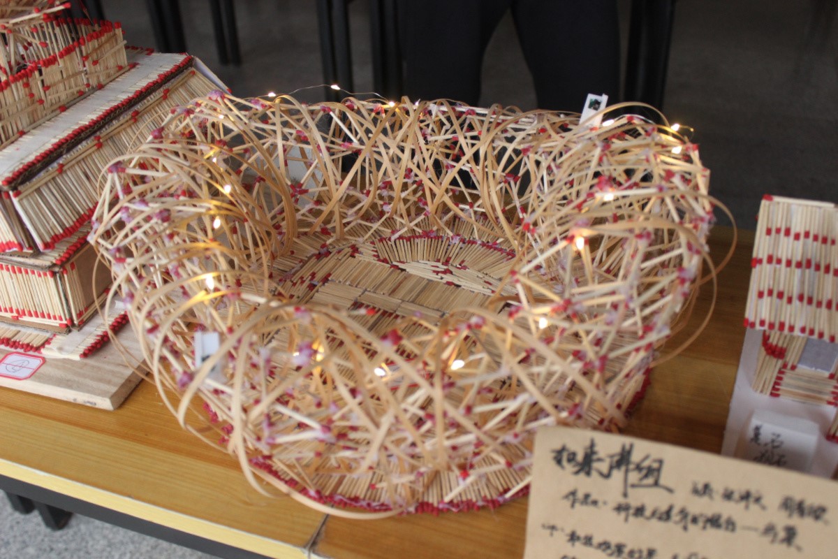 据悉,本次共有140多件火柴艺术作品,参观参选人次达500余人。本次活动以“乡村振兴,科教兴国”为主题,作品也与乡村振兴紧密联系在一起,各种体现浙江乡土人情的建筑模型陈列其中,获得了全校师生的一致好评。
