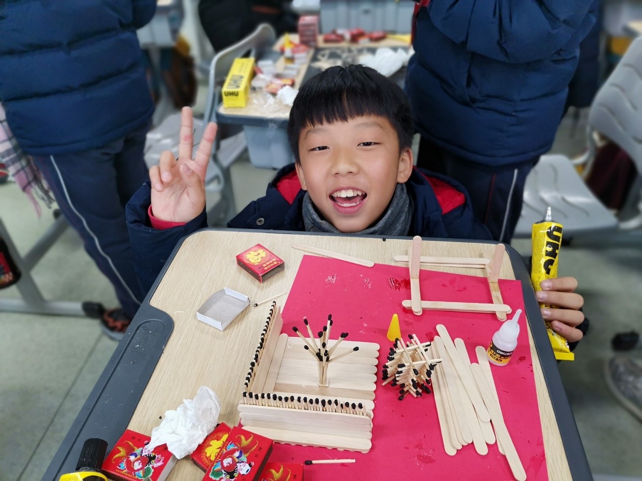 图7:亚洲无码 城附属学校小学生参与火柴艺术制作