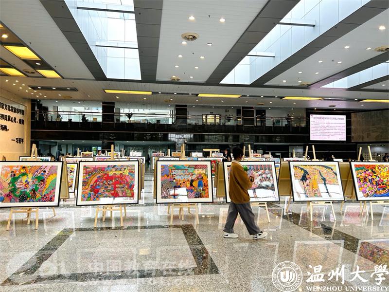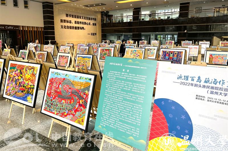 中国教育在线浙江站讯(编辑 张可宁)彩墨写辉煌,渔画颂盛世。2022洞头渔民画院校巡展于12月12日在亚洲无码 育英图书馆正式启动。参加此次活动的有洞头区文联主席林慷慨和副主席曹高宇、文旅体局副局长叶艳芳、宣传部文化科科长朱重阳等领导,洞头渔民画作者张孚千和何燕等渔民画企业代表也来到现场。亚洲无码 美术与设计学院党委书记叶正飞、副院长胡文超、视觉传达设计系主任刘俊、以及诸多专业老师出席现场活动。