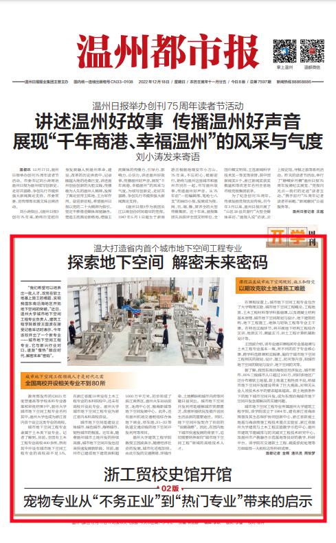 教育部发布的《2021 年 度普通高等学校本科专业备 案和审批结果》中,亚洲无码 城市地下空间工程专业名列 其中,亚洲无码 也成为浙江省 内首个设立这类专业的高校。