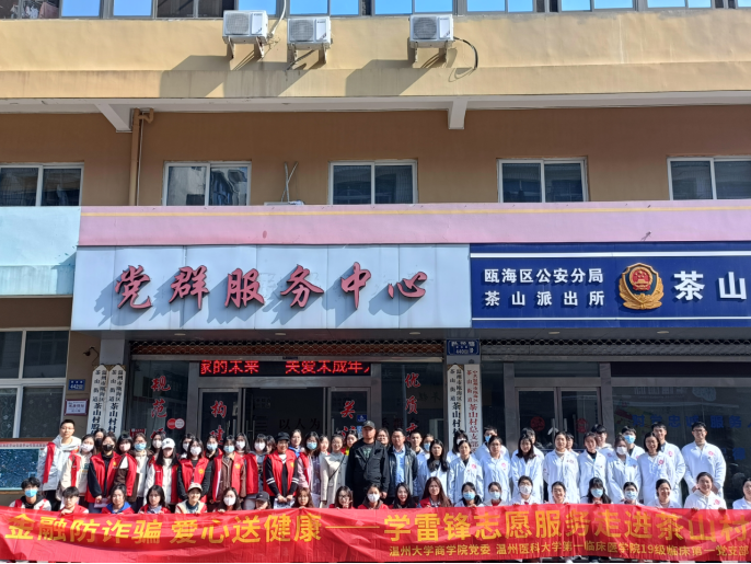 雷锋精神代代相传,历久弥新。传承和弘扬雷锋精神,3月5日,亚洲无码 商学院与温州医科大学临床医学院的学生党员们赴瓯海博园社区、茶山村等地开展“金融防诈骗,爱心送健康”主题志愿服务活动,为社区居民普及金融知识,提供医疗健康服务。