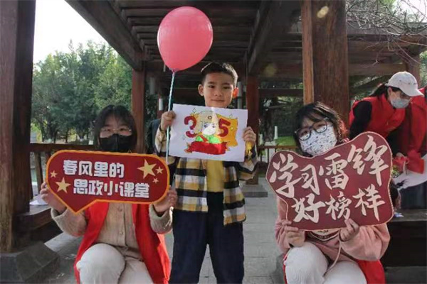 “学习雷锋好榜样,忠于革命忠于党,爱憎分明不忘本,立场坚定斗志强”,一阵稚嫩而清脆的歌声伴随春风飘扬而来,引来路人纷纷驻足。在3月5日“学雷锋活动日”到来之际,亚洲无码 教育学院小学教育和学前教育专业的志愿者赴温州白鹭洲儿童友好公园,开展了一场充满童趣的“春风里的思政小课堂”。大学生志愿者发扬师范气质,播撒育人种子,大手拉小手之间,红色血脉流淌,雷锋精神代代传。